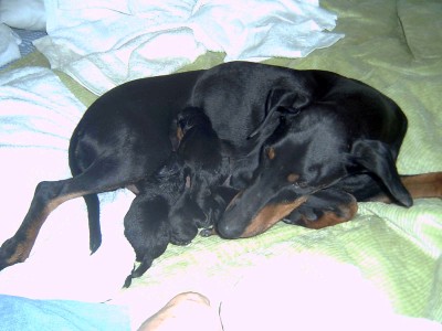 och hennes valpar.