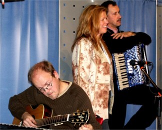 | Susanne Sonntag och Thomas Lundin jämte band uppträdde med trevlig Taubemusik mellan intervjuerna. | ![]() |