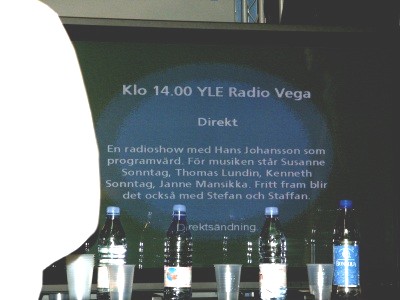 Radio Vega bevakade bokmässan i oktober på bred front. Också vi var med på ett hörn. Hans Johansson hade i sitt populära eftermiddagsprogram "Direkt" bett oss ställa upp för en intervju. Det var i första hand Kuddkriget som intresserade honom. | |||